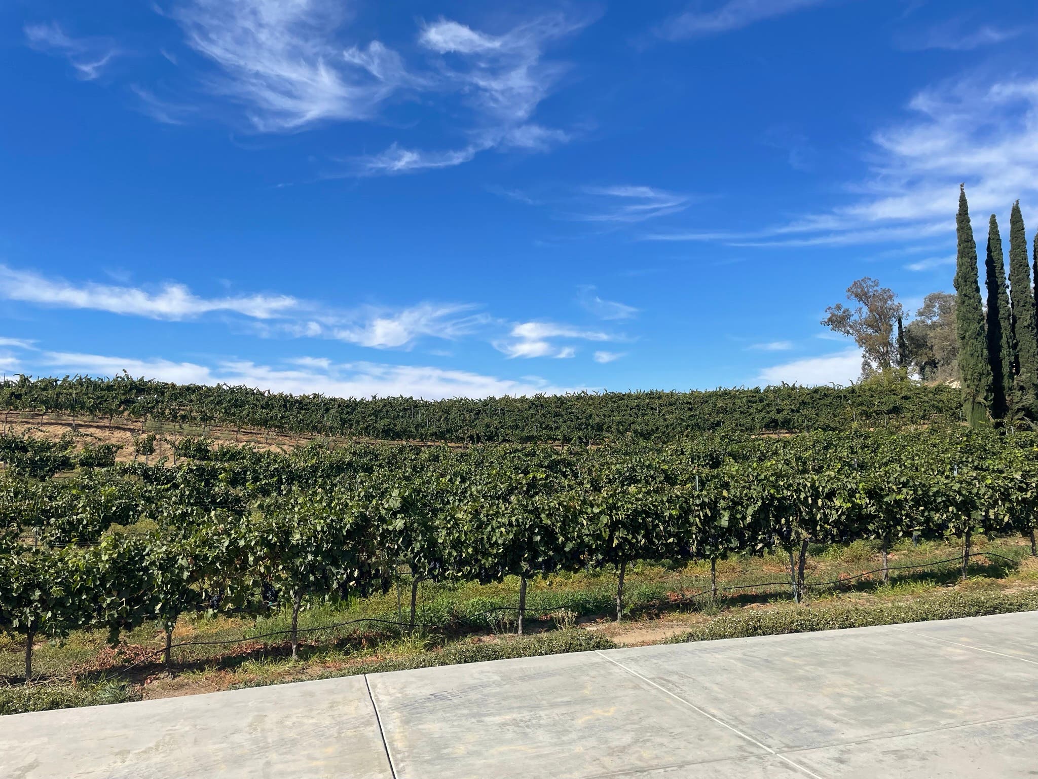 In early October, the ride out along De Portola is bookended with green-leafed vines from neighboring wineries. Some vines remain heavy with fruit, while others have been freshly harvested.