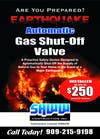 Protect your home and family by installing an earthquake AUTOMATIC gas shut off valve. Our valves shut off the gas automatically.