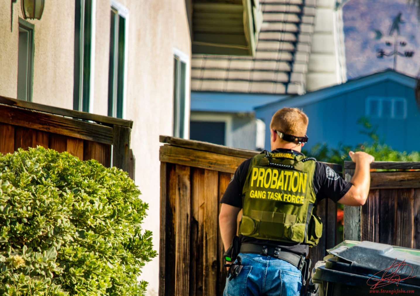 Pinkerton dropped the Green Honda CBR600 motorcycle on the front lawn of a residence in the 5800 block of Nectar Ave and fled through the neighborhood on foot. Pursuing Officers and Gang Taskforce Unit members set up a perimeter around the area and initiated a yard to yard search of homes within the search area.