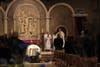The family returned to the church to visit with family.