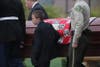 As the rain poured down and the family huddled under umbrellas to say their last goodbye, the church bells rang, while a bugler softly played "Taps."