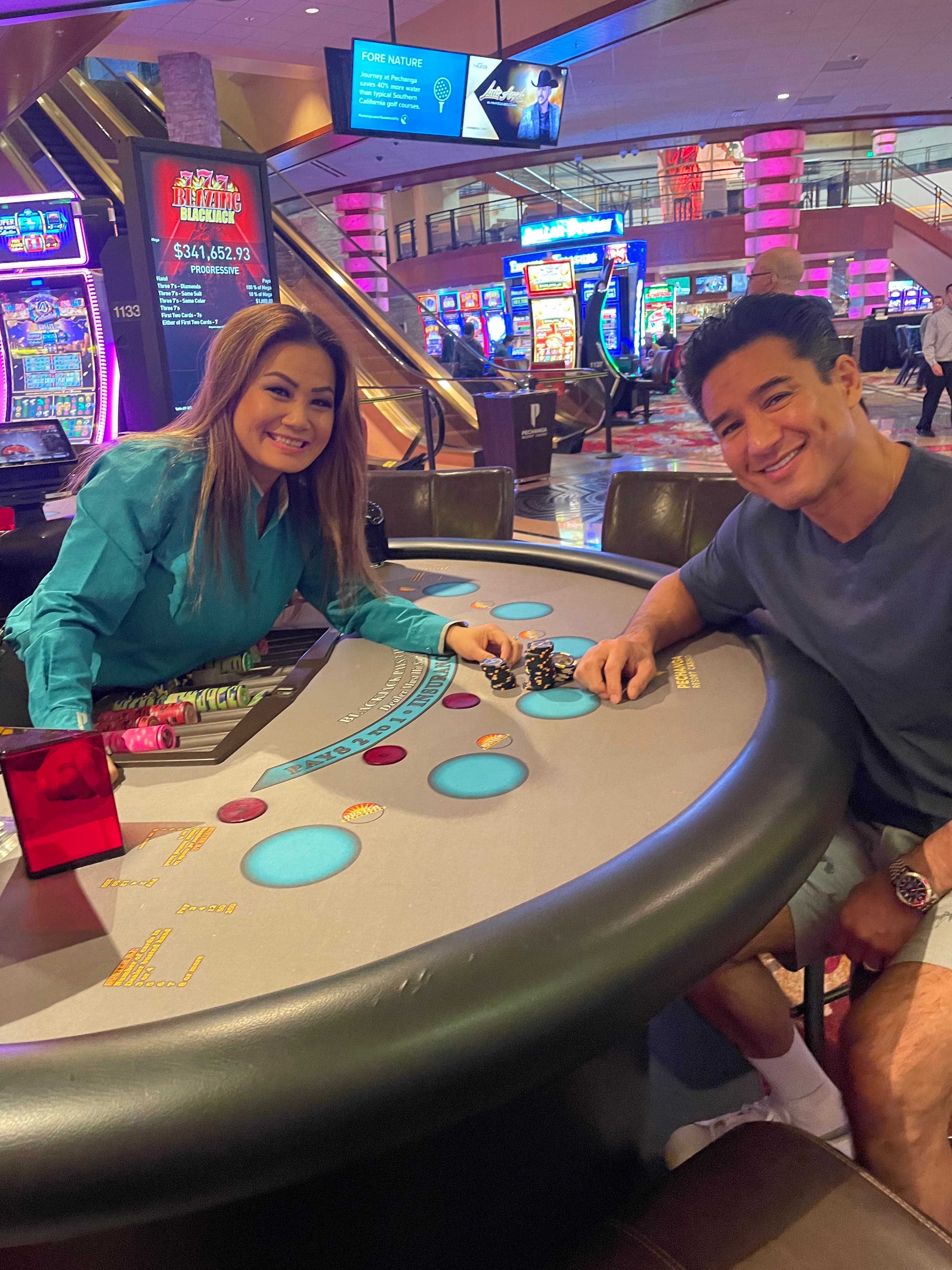 The Lopez family and friends talked with dealers and played games. He took time to pose for selfies with fans and greet guests on the casino floor.