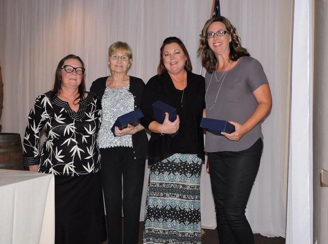 PHOTO: Among the outstanding volunteers recognized at the annual PTA Founders’ Day Celebration were three overall award winners, who will have senior scholarships presented in their honor on behalf of Temecula Valley Council PTA (TVC PTA). Pictured with (far left) TVC PTA President Rebecca Weersing are (L-R): Nancy Olivas, Margarita Middle School; Camille Wettlaufer, Rancho Elementary; and Darla Underwood, Tony Tobin Elementary. COURTESY IMAGE.