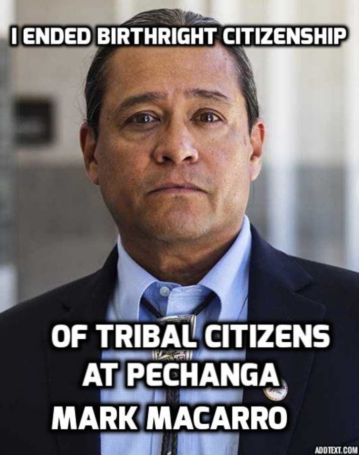 As our President inelegently,wrongfully plans to end Birthright Citizenship by Executive Order, Pechanga Chairman Macarro did it 14 yrs ago