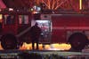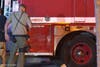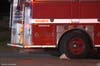 A witness reported the female driver of the pickup declined medical treatment, and the fire engine appeared to have visible damage to a rear lower tool box, located behind the passenger side rear wheels, and was also leaking a significant amount of water from the tank/pump area.