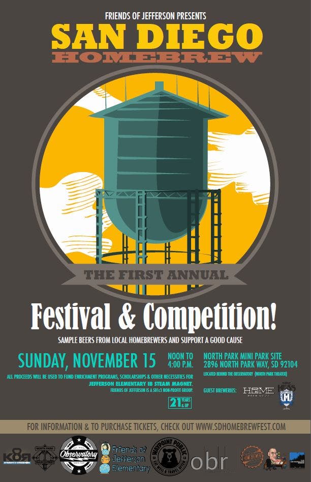 Support the children of Jefferson Elementary School and help this become an iconic North Park event with your ticket purchase. Tickets are available for $35 at http://sdhomebrewfest.brownpapertickets.com. To learn more about the San Diego Homebrew Festival and Competition, visit http://www.sdhomebrewfest.com.