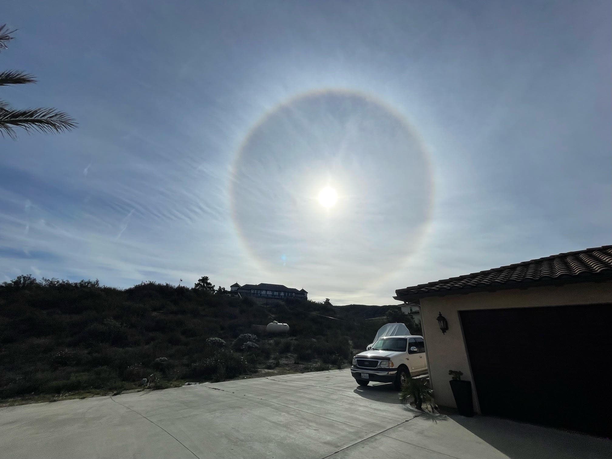 TEMECULA, CA — A full sun halo was captured on camera by Temecula Valley resident Jamie Fibiger. A resident "photo of the week" submitter, this meteorological phenomenon definitely caught their attention.