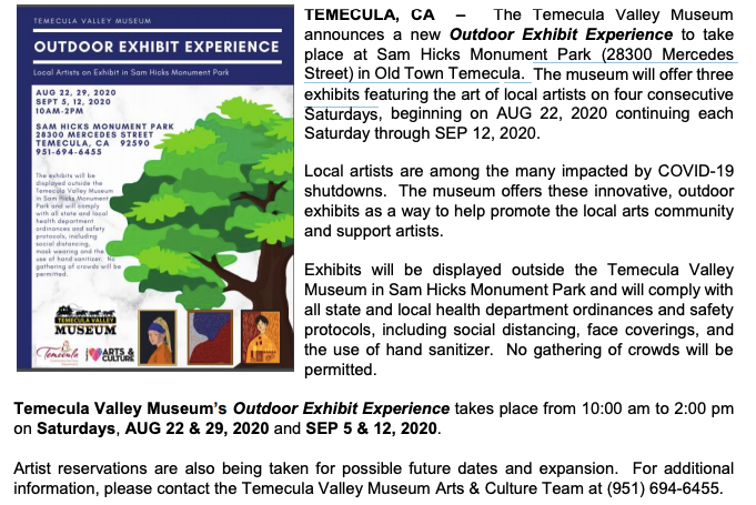 Temecula Museum Announces Outdoor Exhibit Experience