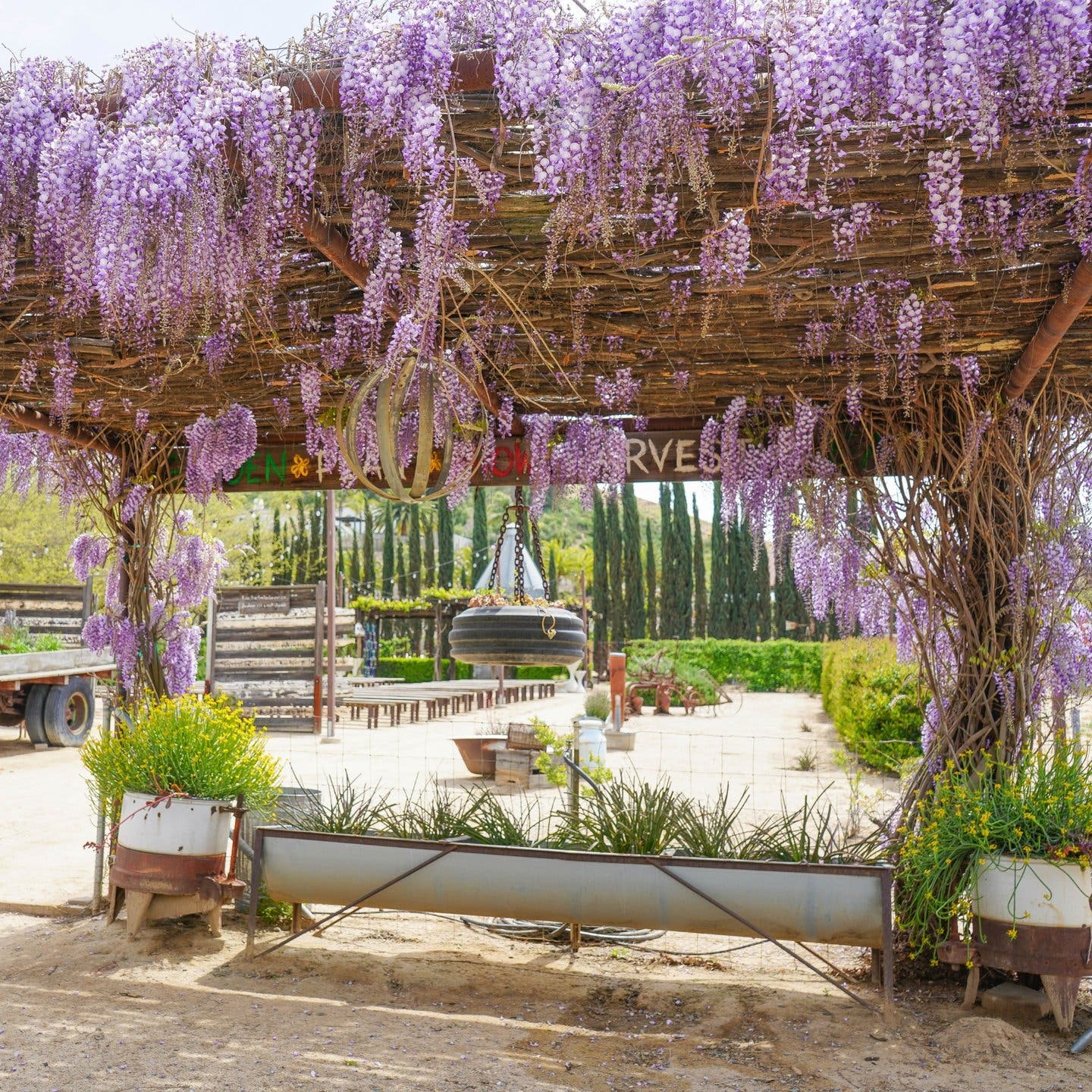Welcome to 'Wisteria Lane' in Temecula, where purple perennial vines make a photo-worthy living backdrop at these Temecula Valley Wineries.