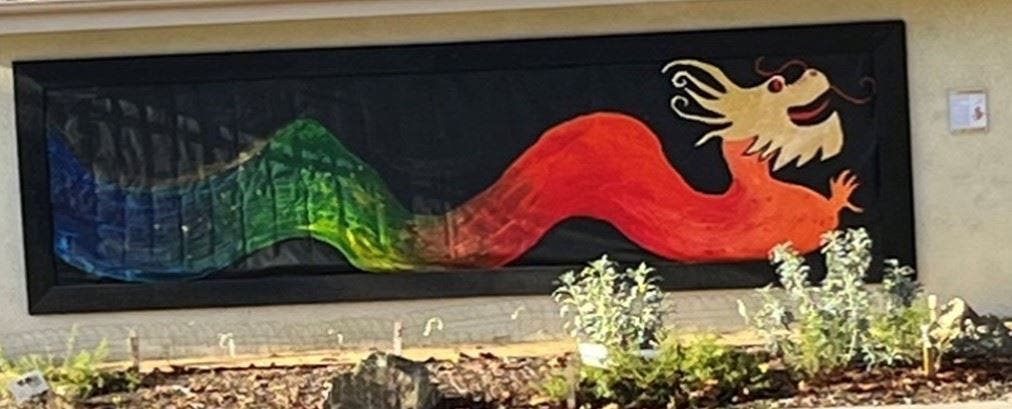 The large colorful dragon is the next installment of the city's temporary mural project, organized by Bigfoot Graphics. Local young artists create massive paintings to showcase the changing seasons and unique holidays, according to the city's Community Services Manager, Jeff Lawrence.