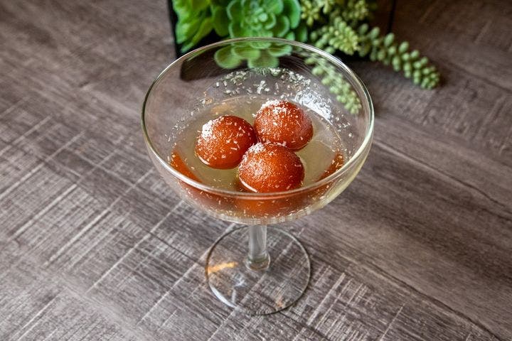 - Dessert: Gulab Jamun served with a scoop of pistachio ice cream. Then, top it off with Himalayan Coffee, with simmered milk.