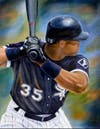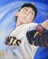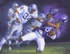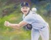 A: Right now I’m working on little ACEO (artist collector edition and original ) paintings for fun and my Etsy store. Then it’s back to some larger paintings, unless I get a commission. I’ve been thinking of doing a Cal Berkley painting for the Ballpark Gallery to hang during football season.