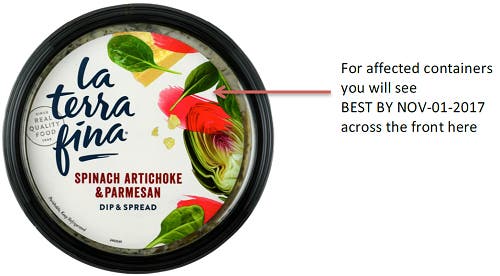 FDA Recall: La Terra Fina Spinach, Artichoke And Parmesan Dip, Spread