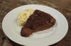 My dining companion had the grilled chicken breast dinner served with white rice, black beans, fried plantains, fresh salsa and a side salad that was dressed with the same marinade as the chicken. He declared the bird moist, tender and flavorful. All entrees are marinated with fresh garlic, water, oil, mustard and Brazilian spices before being grilled.