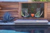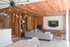 “The Keeshen” is set back from the street by elevated landscaping and series of poured concrete steps that lead to a decked landing and the front door. A large surface mounted slider flanks the front door, which when opened to the deck, allows a guest to travel seamlessly between the interior living room and the outdoor seating area. From the rear portion of the home, the sunken family/dining room connects to the backyard hardscape and pool via an oversized surface mounted slider and floor-to-ceiling window system. To further strengthen the indoor-outdoor connection, poured concrete was used for the hardscape and pool surrounding as well as the family/dining room flooring. The exterior also includes drought-tolerant landscaping, custom designed redwood fence, poured in-place fire pit, and a vertical succulent garden.