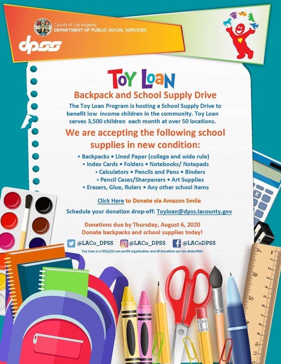 L.A. County Toy Loan Program Hosts Backpack, School Supply Drive