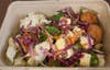 Lastly, I hit the salad bar, which is the best in town in my opinion. There are plenty of greens to choose from for your salad base, including kale, spinach and chard. The fruit and vegetables are too numerous to mention, but I especially liked a couple of the premade salads: the tofu curry salad and the chef’s daily special salad with figs, strawberries and a balsamic dressing. I built a mountain of fresh produce in my container, knowing my eyes were probably bigger than my stomach and I wouldn’t finish it all in one sitting.