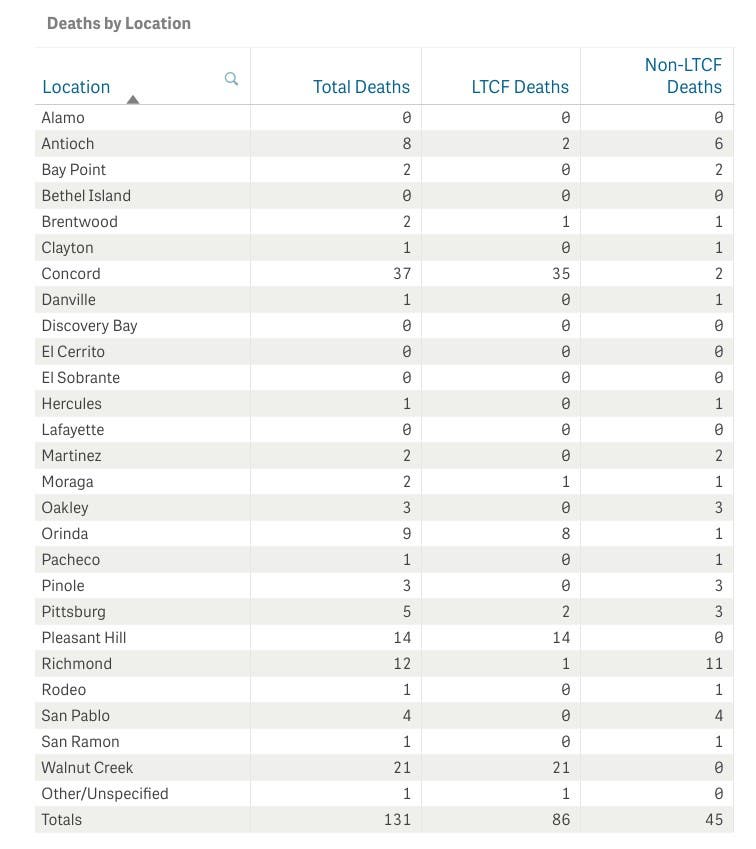 Meanwhile, the county reported 4 new deaths on Tuesday, bringing the total to 131. The deaths were in Walnut Creek, Moraga, Brentwood, and Pittsburg.