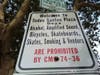 In addition to dogs and smoking, a city sign warns of an ordinance banning alcohol, amplified sounds, bicycles, skateboards, skates and vendors at Todos Santos Plaza.