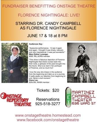 "Florence Nightingale - Live!" written and performed by Dr. Candy Campbell.” An interactive, witty and poignant exploration of our current state of health-consciousness through the eyes of the founder of modern nursing. Dr. Campbell explores healthcare in bygone days in reflection on the future of medicine.