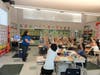 The fifth-graders are engaged. They thrust their hands in the air, straining, so that they can be the one to demonstrate their understanding of the human digestive system … just before lunch!