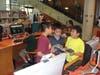Visitors wasted no time making themselves at home in the 5,000-square-foot children's area, or teen area, or in the technology center. Parents and kids gathered up piles of books, and sat reading them, and kids explored one of the 94 public computers available around the library.