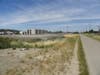 The trail runs parallel to the South Broadway extension. You go behind the sound wall and zip past the athletic facilities at Las Lomas High. A noisy swim meet is being held on this day.
