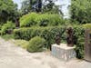 There's a "for sale" sign for a house at the top of a hill. There are also three wooden bear statues an Alamo family has put along their back fence to greet trail users. A church has put banners along its back fence, welcoming trail users to Sunday services.