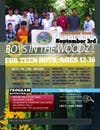 Boys in the Woodz (Outdoor Camp for Teen Boys)Β - This is a coming-of-age program hosted by Growing Up Wild that provides fun learning experiences for teen boys. Activities include Nature Hikes, Ropes Course, Wilderness Skills, Overnight Camping, and more! For more information, visit www.growingupwild.org, email info@growingupwild.org, or call (831) 768-7089. The program will be every weekend starting August 10th to September 3rdΒ for ages 12-16.