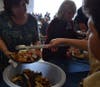 The first annual all-you-can-eat crab feed kicked off at the Watsonville Airport inside the Pacific Aircare hangar on Saturday and approximately close to three hundred people came out to crack open some of the soft shelled crustacean legs.