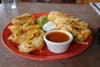 We ordered the Vegetable Rollos appetizer, and were impressed by the presentation on a colorful platter with guacamole, fresh pico de gallo and a flavorful salsa. Wrapped in flakey, fried flour tortillas, the rollos were full of chunky vegetable goodness: broccoli, cauliflower, onions, carrots, as well as beans, mushrooms and cheddar cheese. While cheddar is not exactly “authentic” for Mexican food, it was still yummy. At $11, this appetizer was the most expensive item we ordered from the brunch menu; however, it was large enough to have served as an entrée.