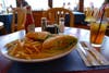 That means you can get a cheeseburger, or an Ortega burger with chilies and avocado. Sandwiches run the gamut from BLT and Reuben to a prawn sandwich with wasabi mayo.