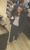 Photos from the store’s surveillance system released by Santa Cruz police show the woman at a checkout line, but it’s difficult to tell she had six bottles of the sparkling wine under her black coat.