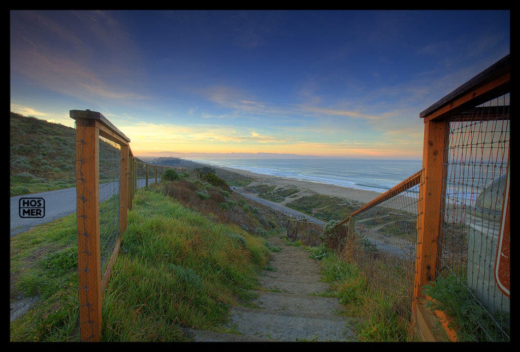 Early-morning walkers and fishermen are specks on the sand. The stacks of Moss Landing can be seen with good eyes. Solitude and reflection abound.