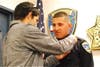 In front of family, friends and his new coworkers at the police department, the 27-year-old grad had his brother, Victor, pin his shiny new badge on his chest.