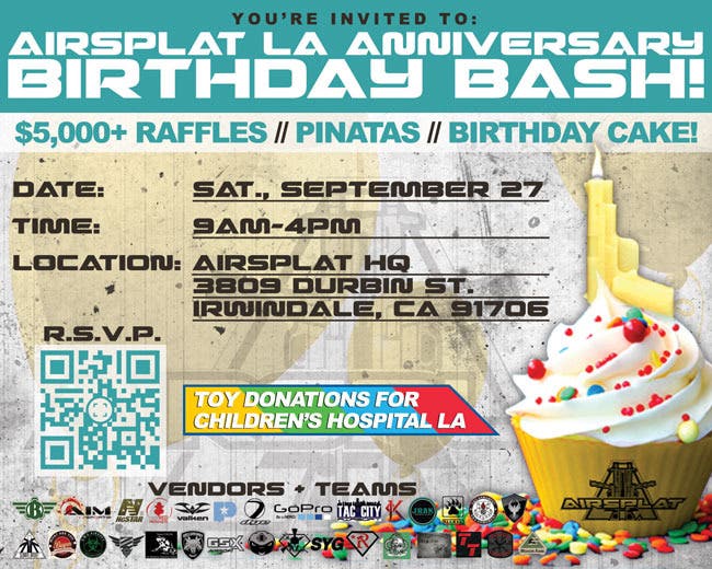 You are invited! Come join AirSplat for our Anniversary Birthday Bash on Saturday September 27th! We will be celebrating AirSplat’s 15 years in business, 2 year store anniversary for Seattle, and 1 year anniversary for Los Angeles!