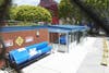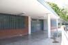 Check out the continuous roof line of the park office structure and the community center structure. The are some amazing architectural details in the breezeway area between these two structures joined together by one roof and cut-outs in the interior staircase area.