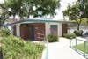 Even the pool house is wet with California Modernism. The cut-outs and geometrics exemplify the style of the movement. There were many eco-friendly treatments done to the structure when Fickett conceived of the park.