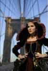 Accompanied by the portentous, mood-setting music of Carmina Burana, wearing a symbolically, blood-red, farthingaled gown, corseted, ruffed, purled and partletted, jeweled and filled with the power of words, Ms. Adelman breaks her tale in the bard’s iambic pentameter, which is fully a direct parallel to the doomed Prince of Denmark. It is everything dramatic.