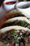 Favorites include the "Maryland Crab Cake" ($4), a crispy, tender, good-sized bite served with creamy remoulade and a corn, baby tomato, and arugula salad; the "Crispy Fried Calamari" ($4), a large place of lightly bettered squid accompanied by a serrano aioli; and the "Filet Mignon Tacos" (three tacos for $6) presented on small corn tortillas with cilantro, minced onions, and sides of spicy salsa and guacamole for garnishing.