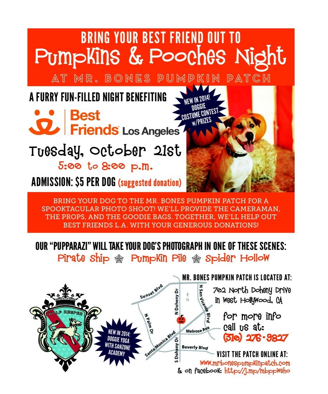 8th Annual Pumpkins & Pooches Night, a benefit for Best Friends Animal Society and NKLA Tuesday, October 21st 5-8pm