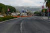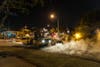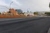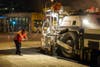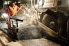 Work continued on Wednesday as crews put down arubberized asphalt surface and then paved the road.