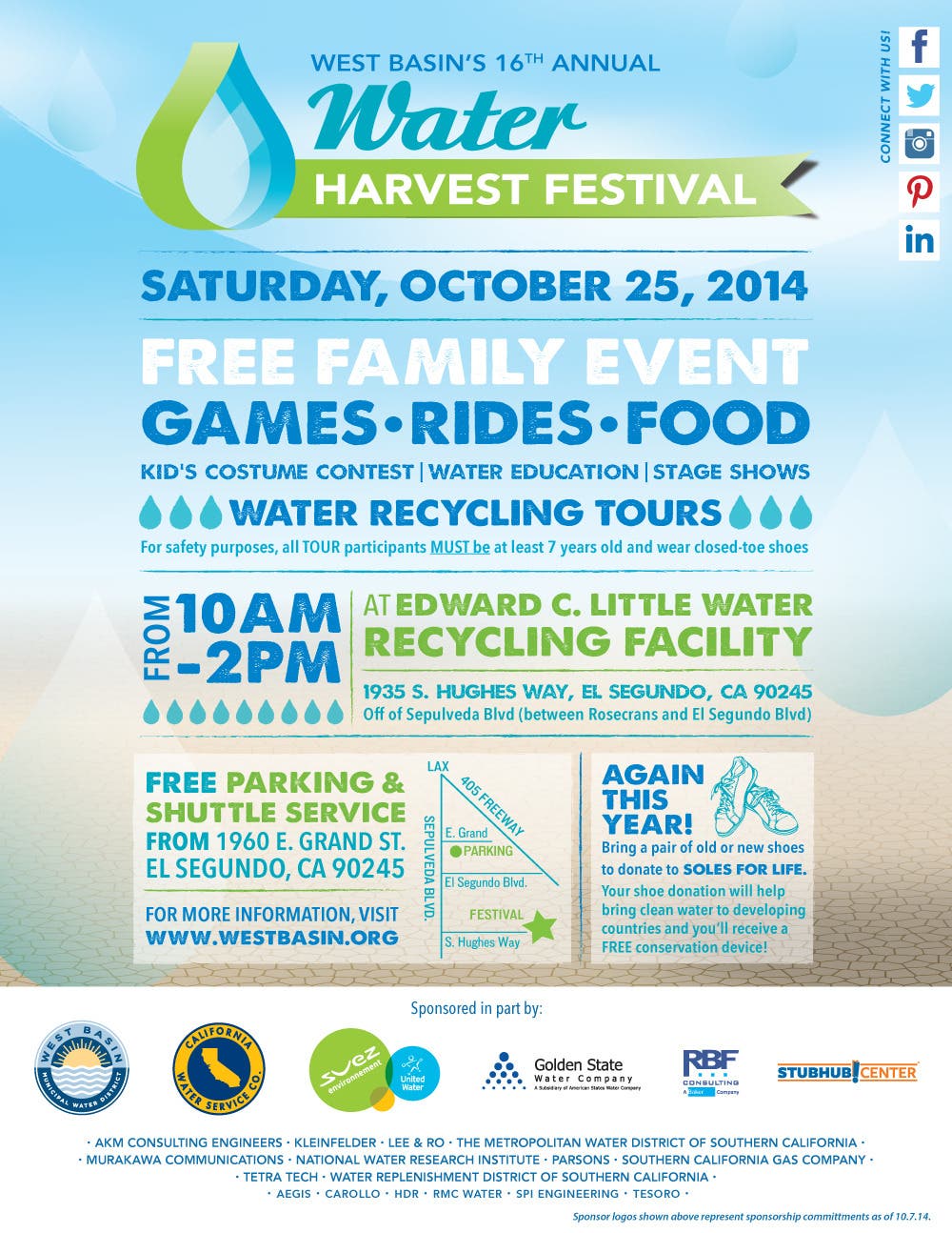 West Basin Municipal Water District (West Basin) presents the 16th Annual Water Harvest Festival on Saturday, Oct. 25 from 10 a.m. - 2 p.m.
