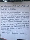 Finally, all along the strip adjacent to the William S. Hart Park and the Sunset Tower hotel are murals that tell the story of West Hollywood with images and texts by artist, Aaron Glasson...so worth a walk to soak in all those details that a drive by, like a tweet, doesn't do the same for you in terms of educational support...and don't forget those amazing turrets on the mural by Miss Brightside, aka: "The Brightside Bib" at Crescent Heights and Santa Monica Blvd. More turrets per resident in West Hollywood than ANYWHERE ELSE IN THE WORLD!