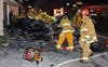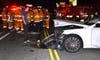 The crash occurred about 9 p.m. Saturday in the 20900 block of Ventura Boulevard and left five other people with unspecified injuries. Bystanders used fire extinguishers and buckets of water in a vain attempt to save the three men who were trapped in the Mustang.