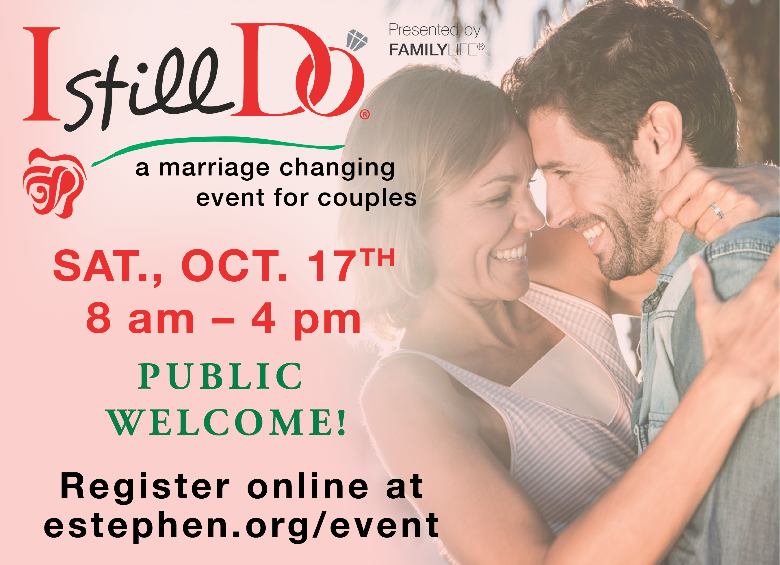 “I Still Do” is a practical, one-day marriage workshop open to the public where couples will learn strategies to strengthen their relationship, rekindle the romance and renew their commitment.