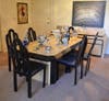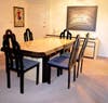 Furniture, Bedroom Set by Henredon, leather sofa, marble coffee table, Lucite Curio cabinet, Dining room table with chairs and more..