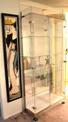Jewelry, Sterling Silver, Signed Art by Nierman, Max, Agam, Ramseur - Lalique, Lladro, Waterford, Val St Lambert, Toni Moretto figurines, Henredon furniture, Pickard China, Lucite Curio Cabinet, Wedgwood, Art Glass, Dolls, Marble coffee table,