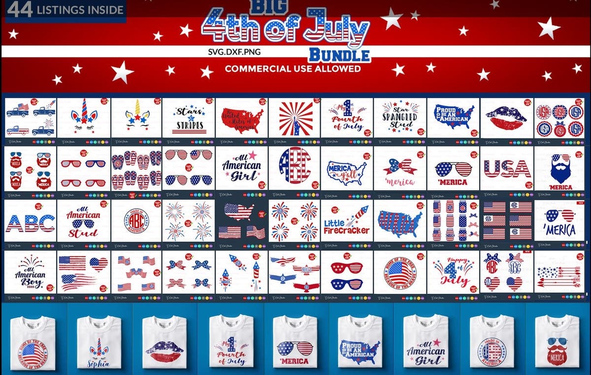 The ability to quickly customize an existing store-bought holiday t-shirt is limited by your own imagination and time. The upcoming plethora of red-white-blue and patriotic themed clothing can all be improved upon or personalized with additional wording on areas left empty, such as sleeves or the back. The BIG Fourth Of July BundleBIG Fourth Of July Bundle is a wonderful tool from DesignBundles