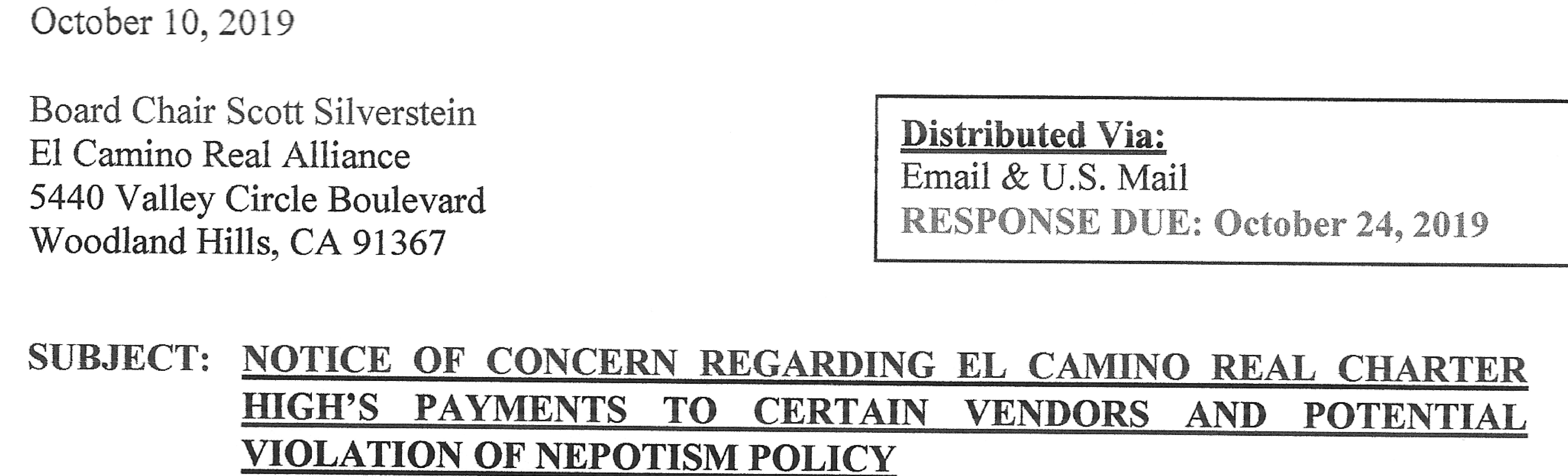 Did El Camino Real Charter High School refuse to reveal the results of an audit in order to cover up a "potential violation of nepotism poli
